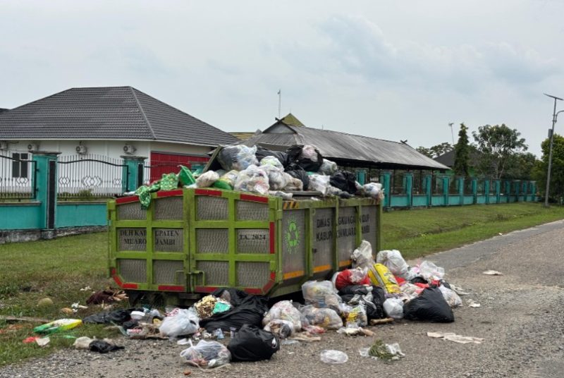 MUARO JAMBI — Tumpukan sampah yang menggunung di kawasan perkantoran Pemerintah Kabupaten Muaro Jambi menuai sorotan tajam. Sampah rumah tangga bercampur plastik dan sisa makanan terlihat menumpuk hingga ke badan jalan, menimbulkan bau menyengat dan mengganggu aktivitas pegawai maupun pengendara yang melintas.